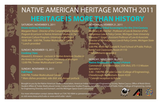 Univ. of Michigan Native Heritage Month Events (Including Talks by Fletcher & Singel, 11/21) November 10, 2011November 17, 2011Matthew L.M. Fletcher Click to make it bigger. Fletcher will be presenting “Race and American Indian Tribal Nationhood.” Singel will be presenting her paper, “Indian Tribes and Human Rights Accountability.” Print (Opens in new window) Print Email a link to a friend (Opens in new window) Email Share on X (Opens in new window) X Share on Facebook (Opens in new window) Facebook More Share on Pinterest (Opens in new window) Pinterest Share on Tumblr (Opens in new window) Tumblr Share on Reddit (Opens in new window) Reddit Like Loading... Related