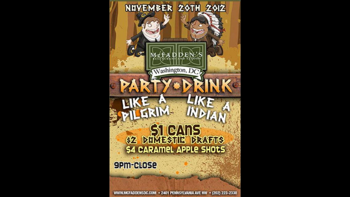McFadden’s has a chain of bars across the county most of them have used similar ads depicting images of woman dressed as a Native Woman. Check these few images I found today: