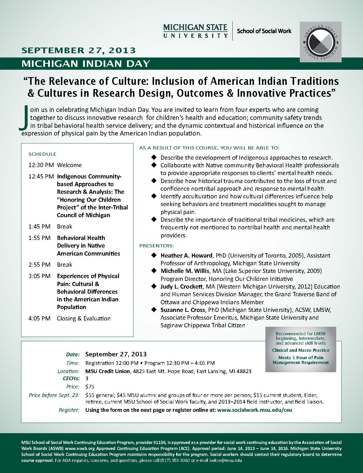 2013 Michigan Indian Day Event — This Afternoon September 27, 2013Matthew L.M. Fletcher Here is the flyer: MichIndianDay2013PROMO Click to print (Opens in new window) Print Click to email a link to a friend (Opens in new window) Email Click to share on X (Opens in new window) X Click to share on Facebook (Opens in new window) Facebook More Click to share on Pinterest (Opens in new window) Pinterest Click to share on Tumblr (Opens in new window) Tumblr Click to share on Reddit (Opens in new window) Reddit Like Loading... Related