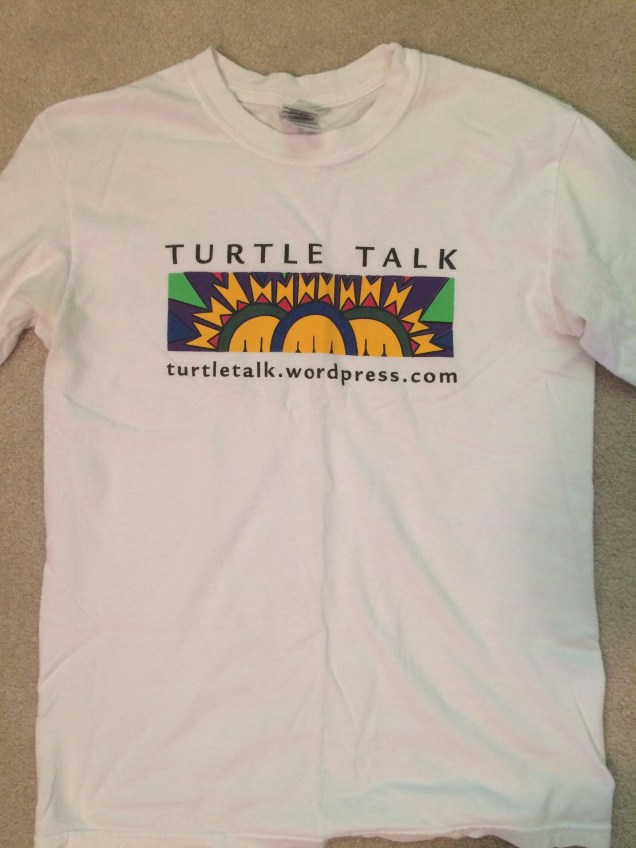 We just received an order for a Turtle Talk t-shirt–we have the following left: