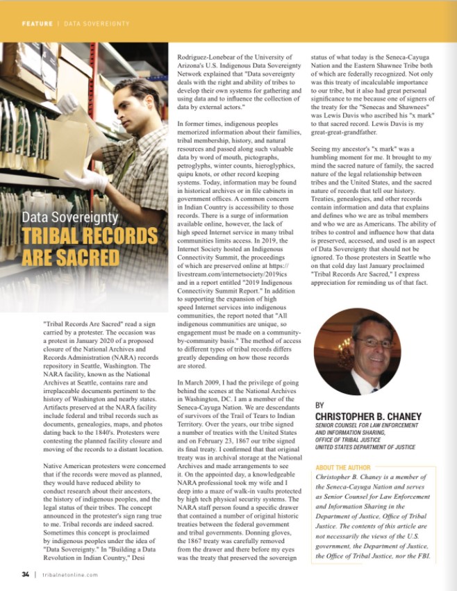 Chris Chaney on Tribal Data Sovereignty November 5, 2020Matthew L.M. Fletcher “Data Sovereignty: Tribal Records are Sacred” is available here. Click to print (Opens in new window) Print Click to email a link to a friend (Opens in new window) Email Click to share on X (Opens in new window) X Click to share on Facebook (Opens in new window) Facebook More Click to share on Pinterest (Opens in new window) Pinterest Click to share on Tumblr (Opens in new window) Tumblr Click to share on Reddit (Opens in new window) Reddit Like Loading... Related