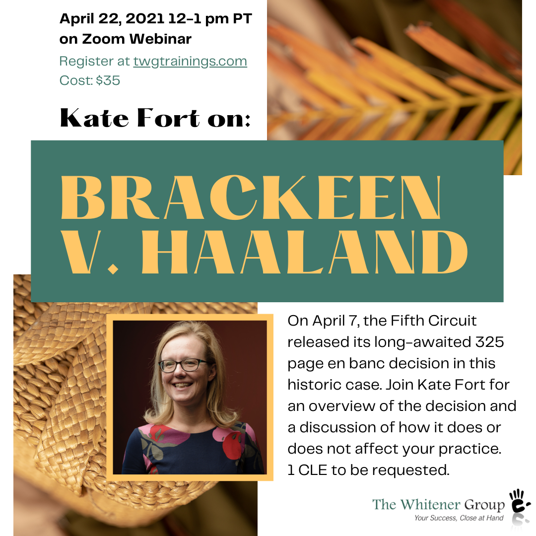 Registration is still open for the 1 hour webinar hosted today, April 22 12-1pm PT (3-4pm ET): https://www.twgtrainings.com/brackeen-decision
