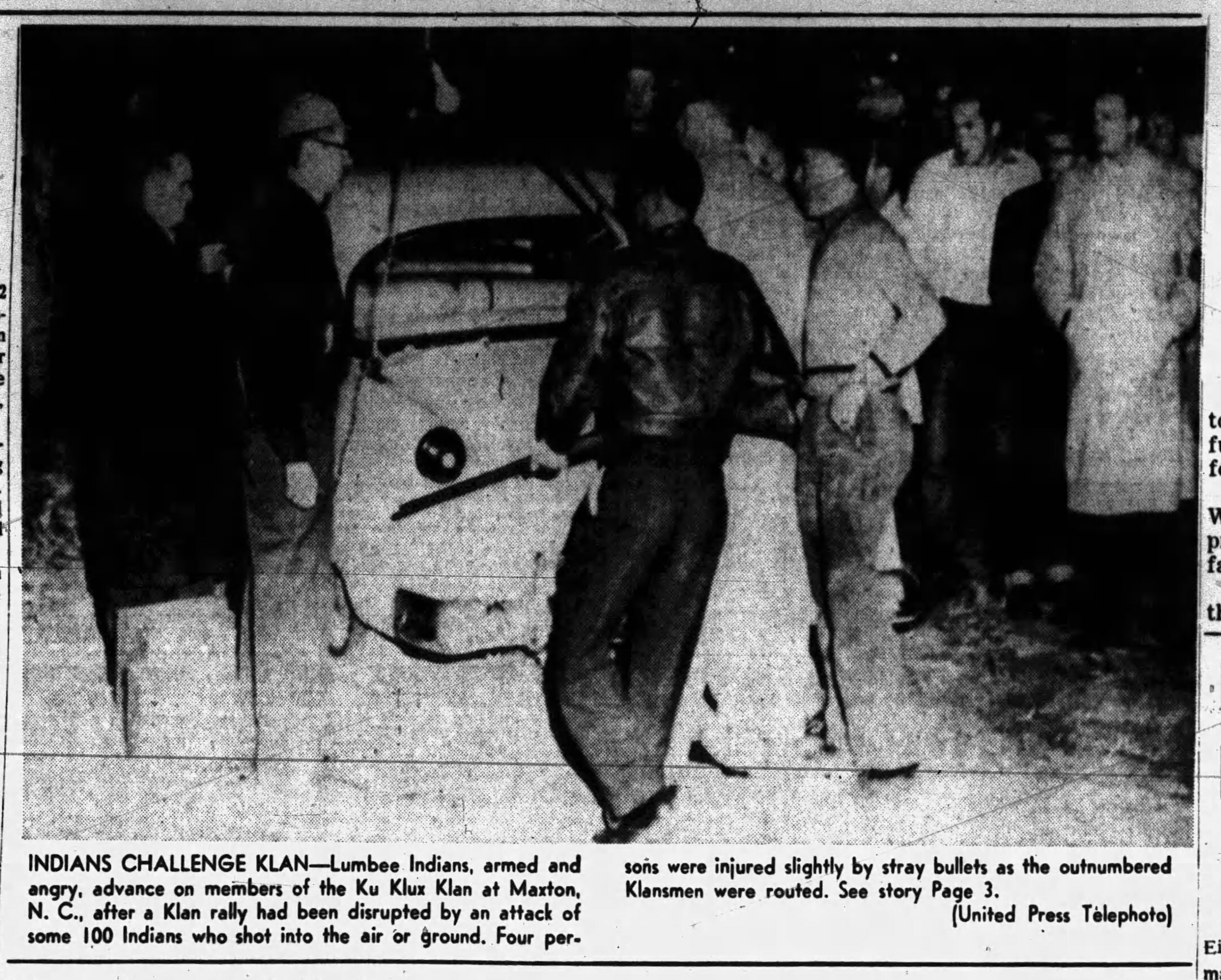 In campaign for U.S. House, new ad for NC state Rep. Charles Graham (Lumbee) recalls Lumbee Tribe’s 1958 faceoff with the KKK October 5, 2021October 5, 2021Singel Click on the image below to view the ad: Odessa American, Jan. 20, 1958 Click to print (Opens in new window) Print Click to email a link to a friend (Opens in new window) Email Click to share on X (Opens in new window) X Click to share on Facebook (Opens in new window) Facebook More Click to share on Pinterest (Opens in new window) Pinterest Click to share on Tumblr (Opens in new window) Tumblr Click to share on Reddit (Opens in new window) Reddit Like Loading... Related