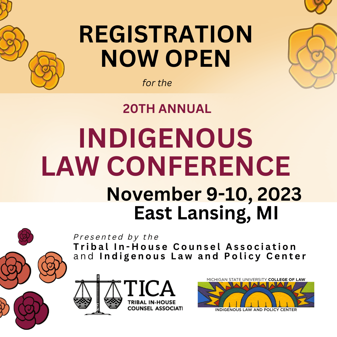 Visit www.indigenouslawconference.com for details as they arise. Registration is now available! Proudly hosted by the Indigenous Law and Policy Center and the Tribal In-House Counsel Association.