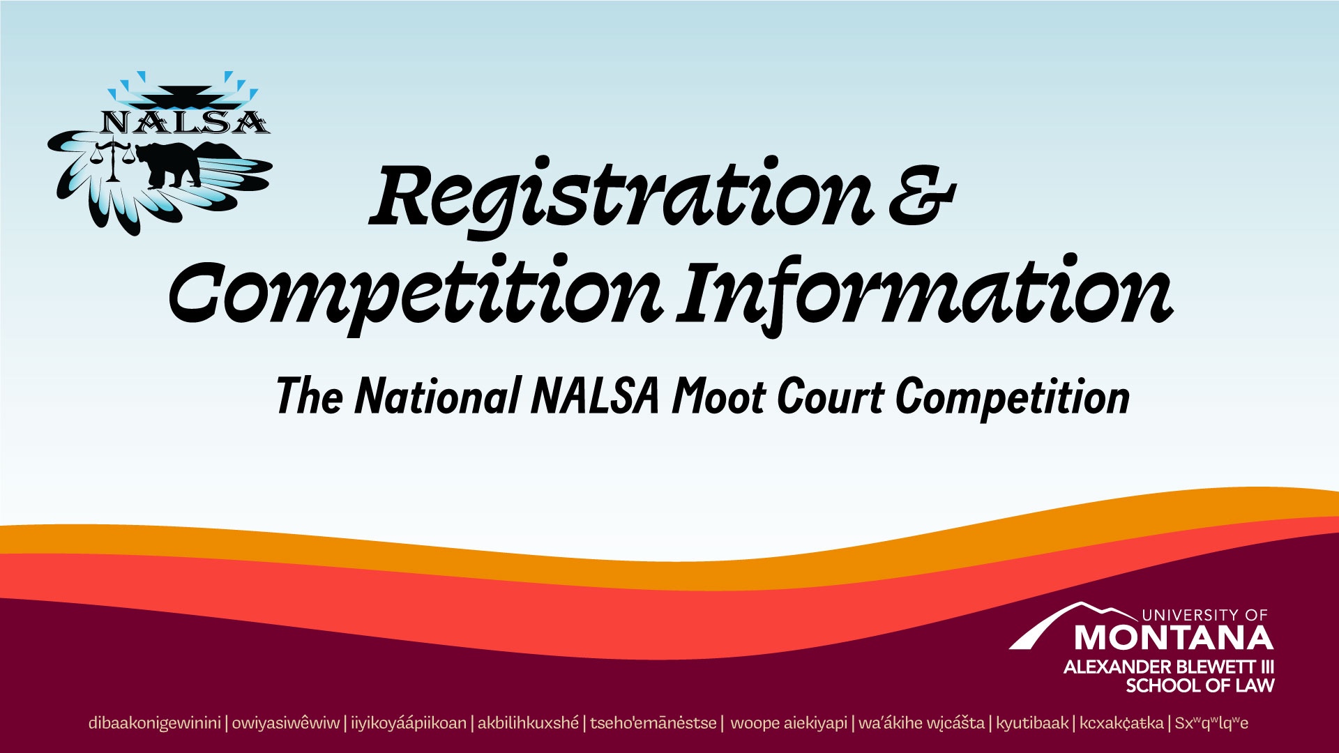 The National Native American Law Student Association (NNALSA), in partnership with the University of Montana, Alexander Blewett III School of Law NALSA Chapter, are excited to host the 32nd Annual NNALSA Moot Court Competition.