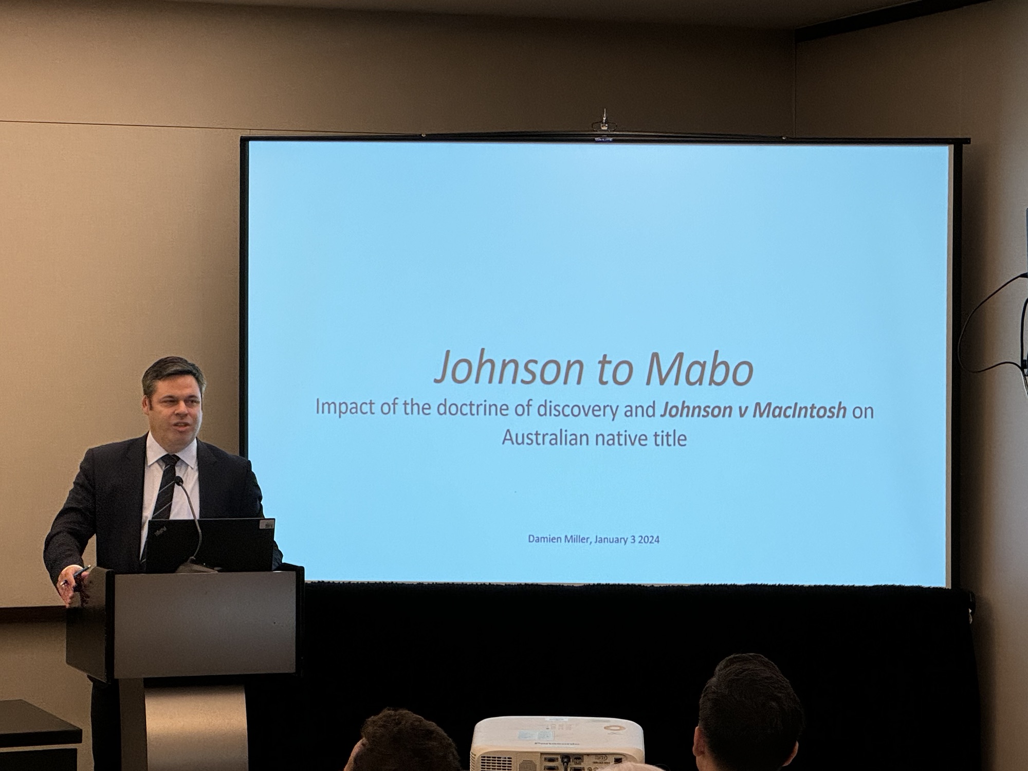 AALS Indian Law Section Pics January 4, 2024Matthew L.M. Fletcher Courtesy of Bill Wood: John laVelle Damien Miller Ezra Rosser Click to print (Opens in new window) Print Click to email a link to a friend (Opens in new window) Email Click to share on X (Opens in new window) X Click to share on Facebook (Opens in new window) Facebook More Click to share on Pinterest (Opens in new window) Pinterest Click to share on Tumblr (Opens in new window) Tumblr Click to share on Reddit (Opens in new window) Reddit Like Loading... Related
