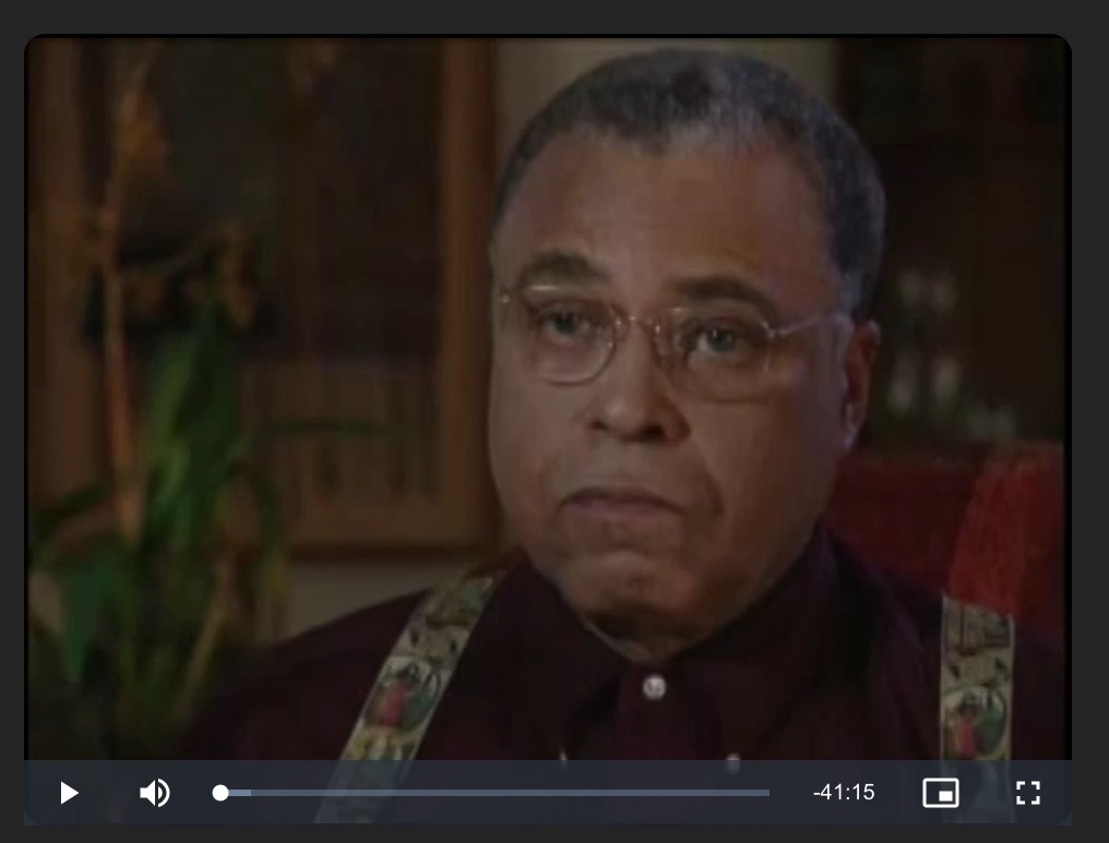 James Earl Jones: Well, the whole thing about black actors in leading roles began to, you know, occurred to me. And before that, I don’t think any. Hollywood sure didn’t worry about it. You know, where was the box office there they’d say, you know. And blacks weren’t in into complaining a lot about the images. I myself would watch John Wayne movies. I woke up to handle feeling like John Wayne. Didn’t matter to me. I didn’t need a black face to identify with, you know. But there was there was something that was missing in the American spectrum when I saw Jeff Turner playing all the Indians and not a real Indian. And I knew I was raised among Chippewa Indians and I knew what they looked like and what they were different culturally. And I kept wondering, well, why can’t I see them playing Cochise and so on and. And Sidney being Sidney and also Harry, both being from the Caribbean, that was somehow much more feasible in a way because they were they weren’t American black men. They were in touch with a different reality than guys like me from Mississippi, you know.