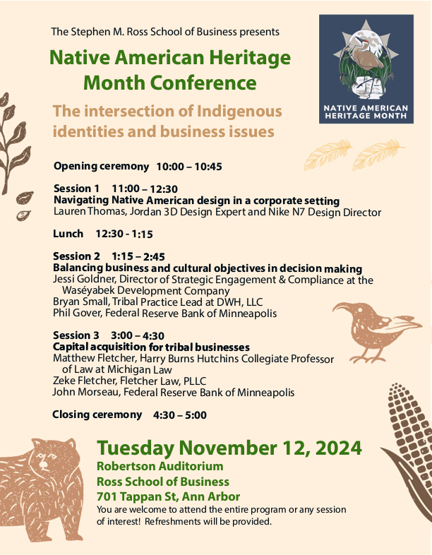UM Ross Native American Heritage Conference TODAY November 12, 2024Matthew L.M. Fletcher Click to print (Opens in new window) Print Click to email a link to a friend (Opens in new window) Email Click to share on X (Opens in new window) X Click to share on Facebook (Opens in new window) Facebook More Click to share on Pinterest (Opens in new window) Pinterest Click to share on Tumblr (Opens in new window) Tumblr Click to share on Reddit (Opens in new window) Reddit Like Loading... Related
