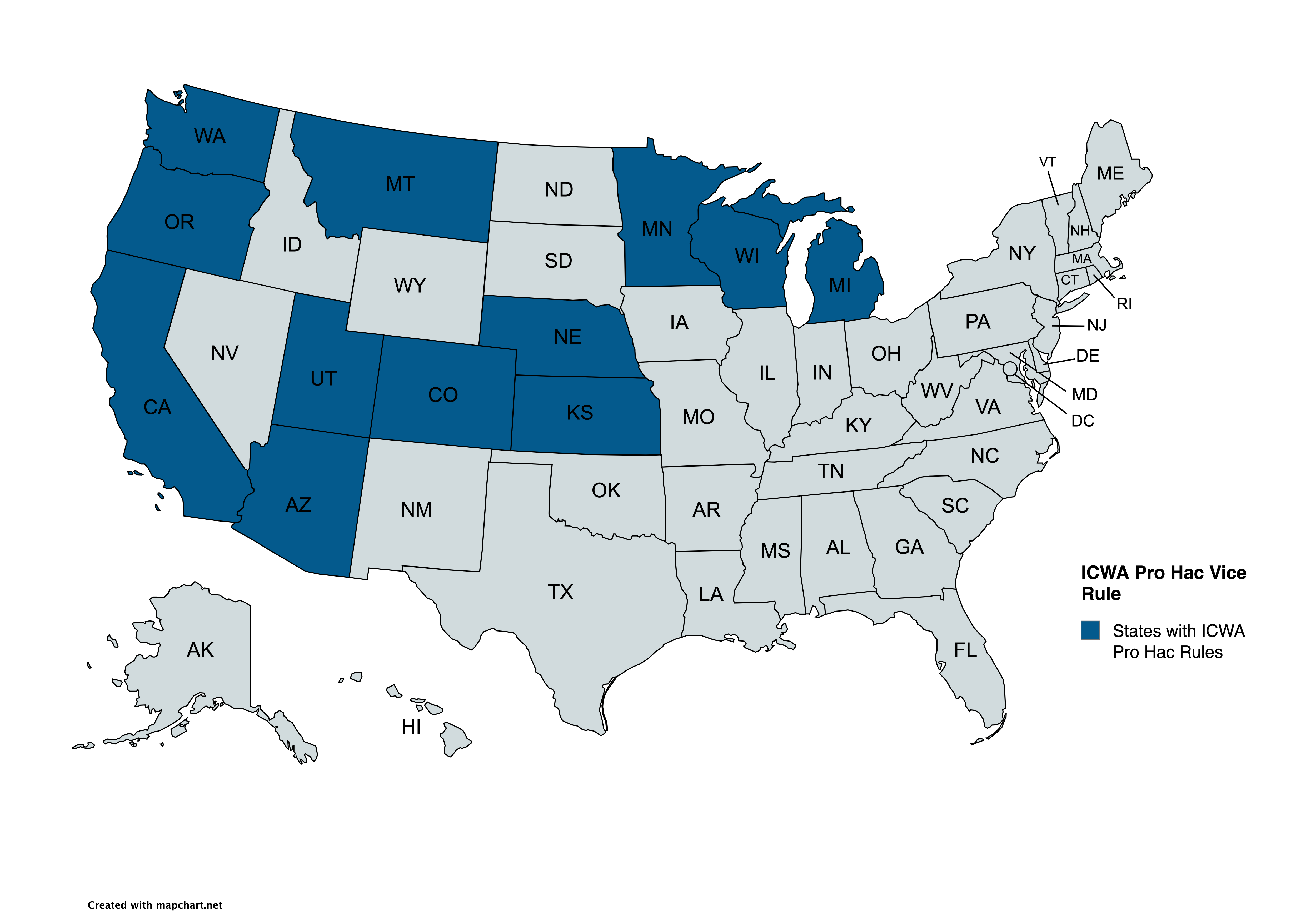 Late last month, Montana adopted a new rule allowing out of state attorneys to practice in ICWA cases and waiving certain requirements. This brings the total number of states with these kind of waivers to twelve (that I am aware of). If your state doesn’t have one of these, it’s a pretty straight forward rule to advocate for. If your state does have one of these, check in with practitioners to see if they are able to access your electronic filing system once they waive in. Or work on forms regarding appeals so intervened tribes are aware when appeals involving ICWA are filed by parents.