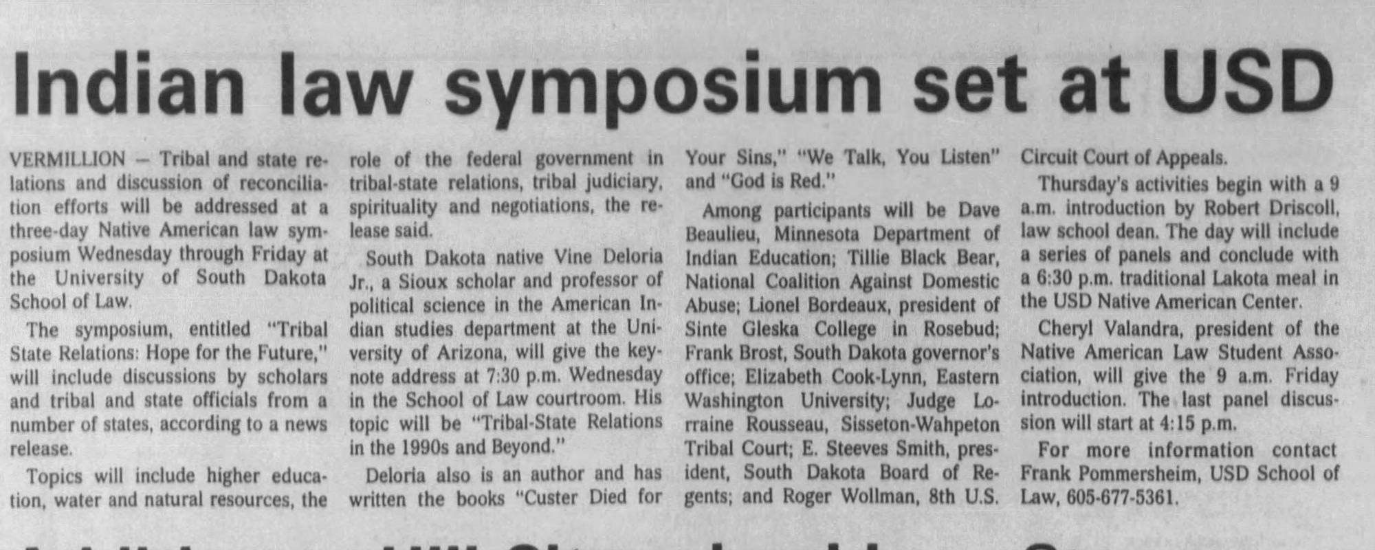The University of South Dakota Knudson School of Law seeks to hire a Tenure Track Professor, with expertise in the fields of Indian Law and related subjects. USD Law has a long-standing institutional commitment to the field of Indian Law.