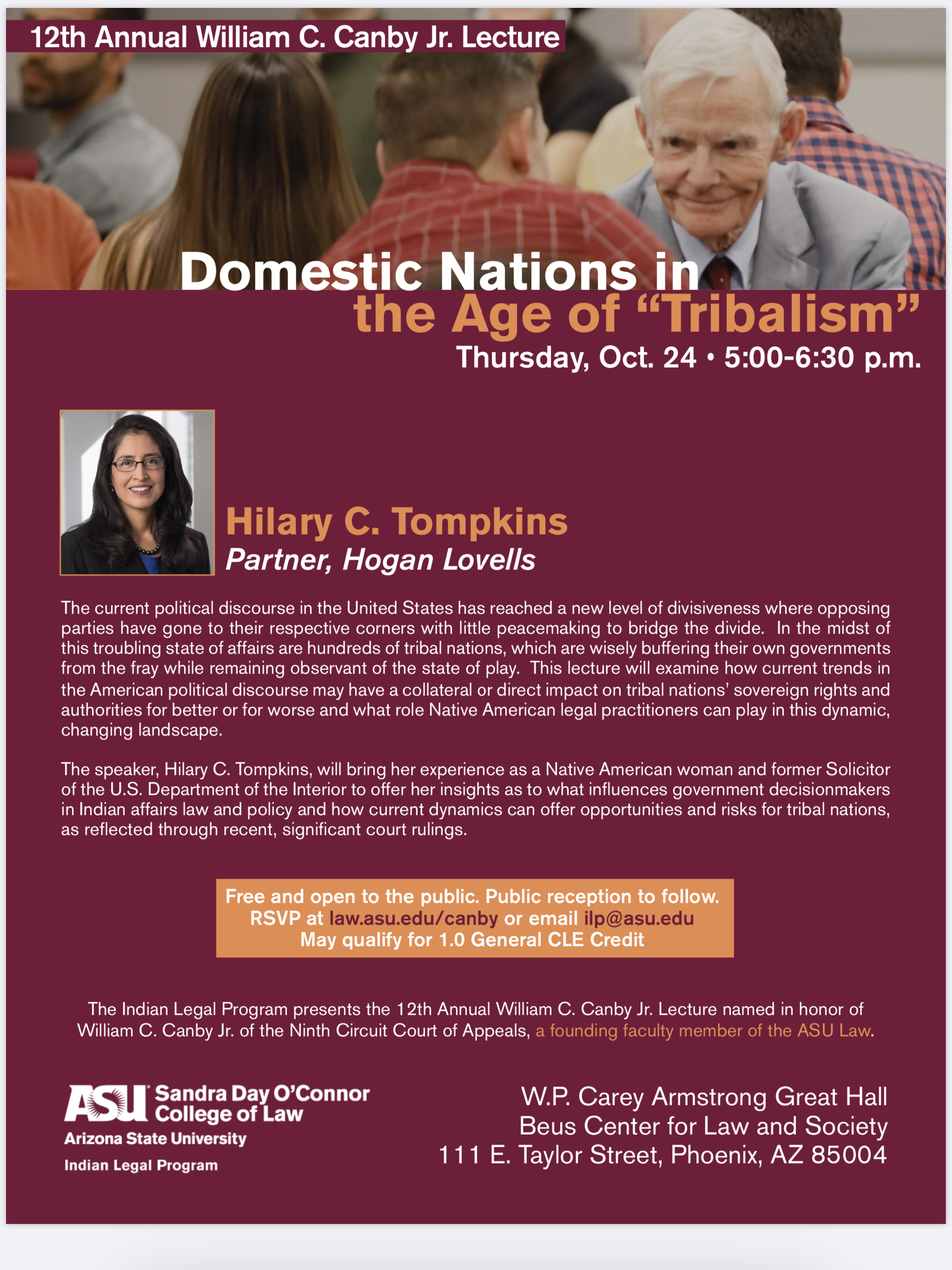 The Indian Legal Program at the Sandra Day O’Connor College of Law at Arizona State University is pleased to present the: