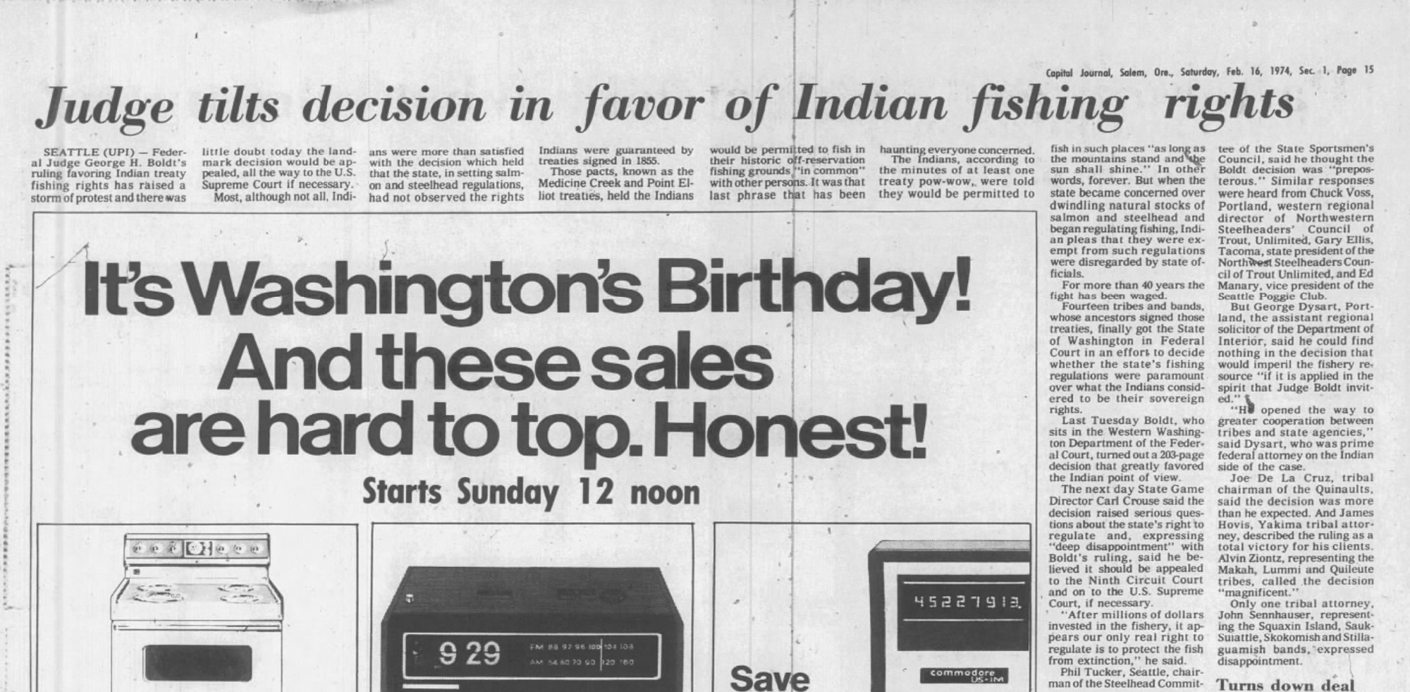In 1974, Judge George Boldt issued a ruling that affirmed the fishing rights and tribal sovereignty of Native nations in Washington State. The Boldt Decision transformed Indigenous law and resource management across the United States and beyond. Like Brown v. Board of Education, the case also brought about far-reaching societal changes, reinforcing tribal sovereignty and remedying decades of injustice.