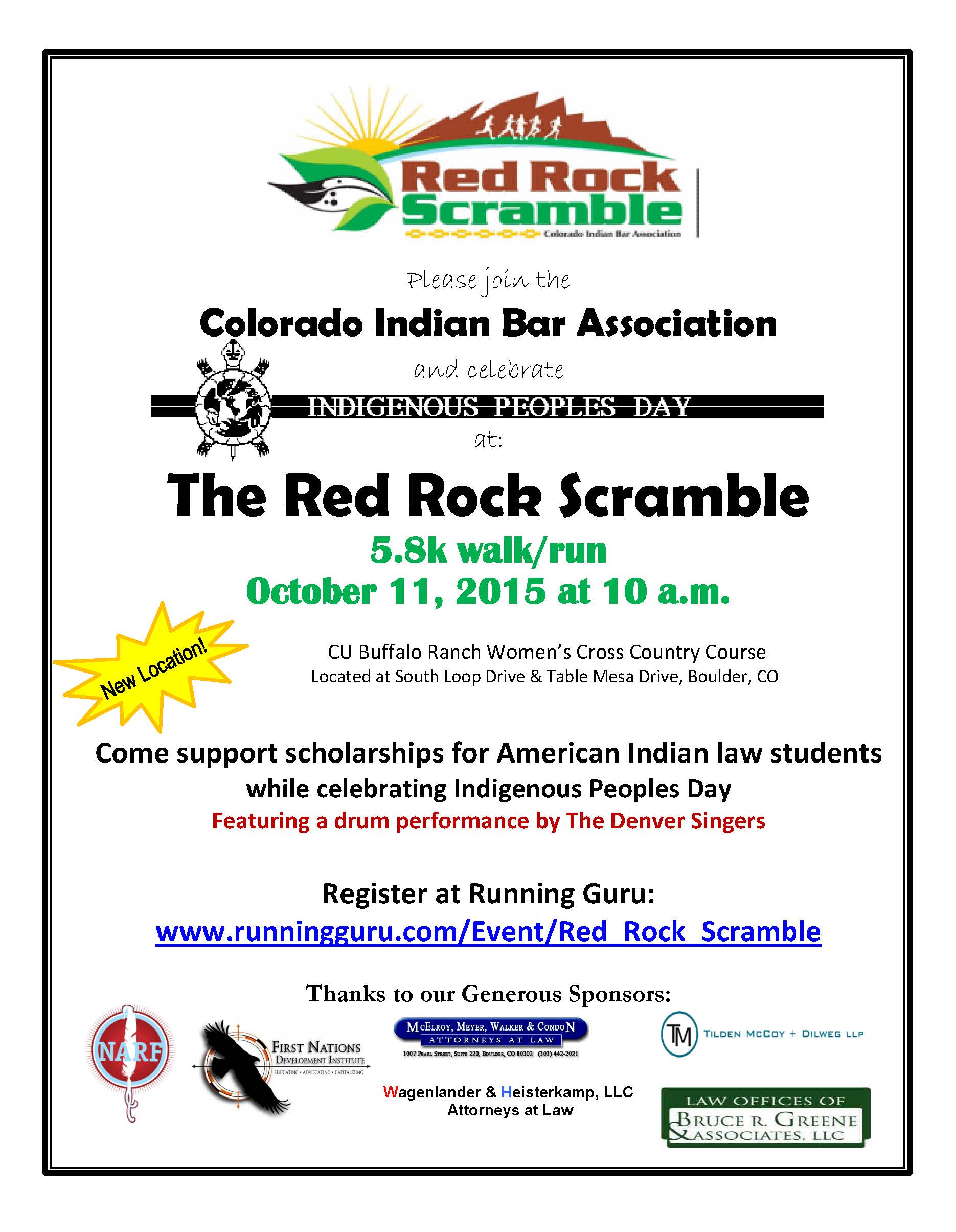 2015 Colorado Indian Bar Association Red Rock Scramble — October 11, 2015 September 29, 2015Matthew L.M. Fletcher Here: 2015 Red Rock Scramble Flyer Click to print (Opens in new window) Print Click to email a link to a friend (Opens in new window) Email Click to share on X (Opens in new window) X Click to share on Facebook (Opens in new window) Facebook More Click to share on Pinterest (Opens in new window) Pinterest Click to share on Tumblr (Opens in new window) Tumblr Click to share on Reddit (Opens in new window) Reddit Like Loading...