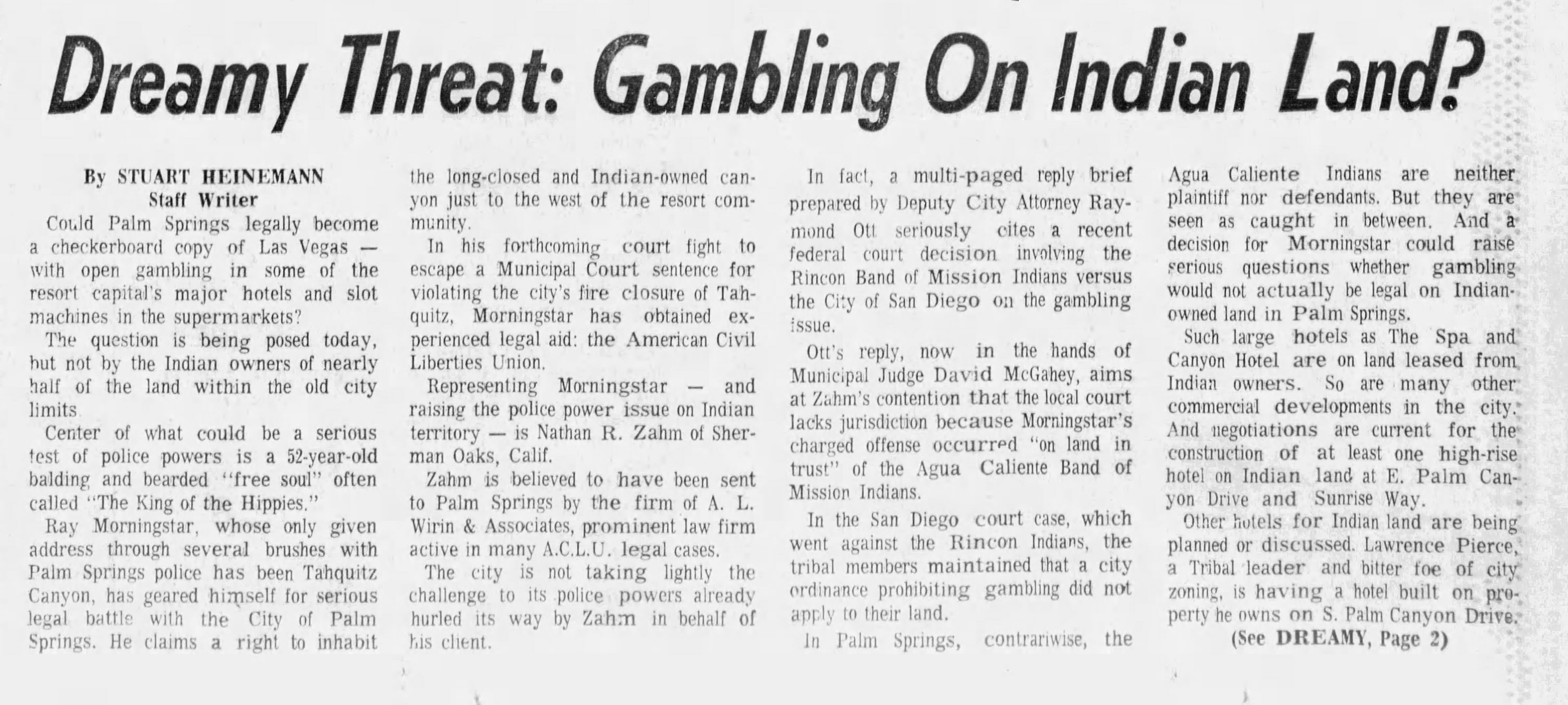 This Article details the development of the legal doctrine around Indian gaming and how the people involved—legal services attorneys working with legal scholars at the behest and on behalf of Indigenous peoples asserting their sovereignty against state pushback—changed the course of the jurisprudence, providing the framework that yielded the result in Cabazon and Indian gaming as it exists today.