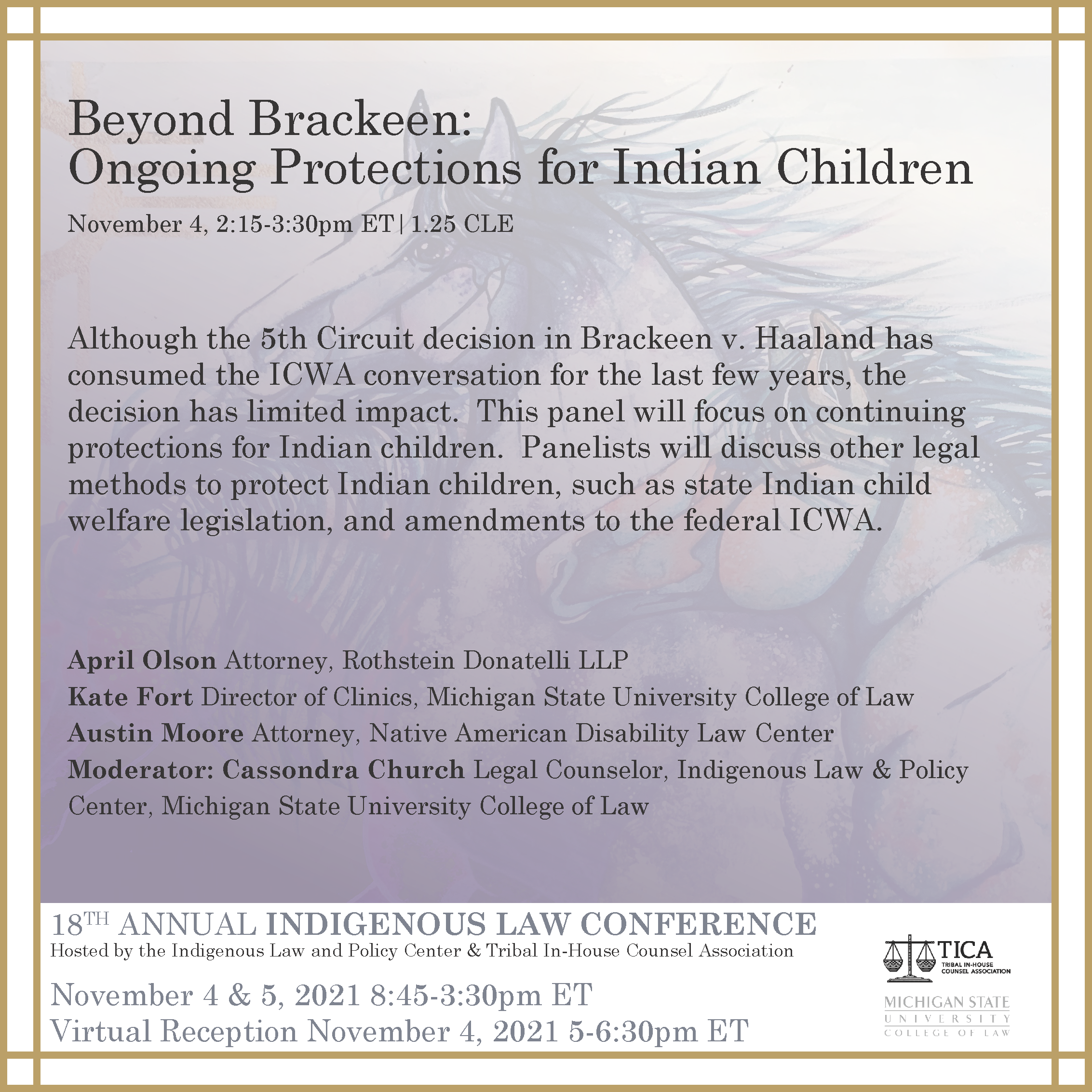 Beyond Brackeen: Ongoing Protections for Indian Children: 2021 Indigenous Law Conference Day 1 Panel 3