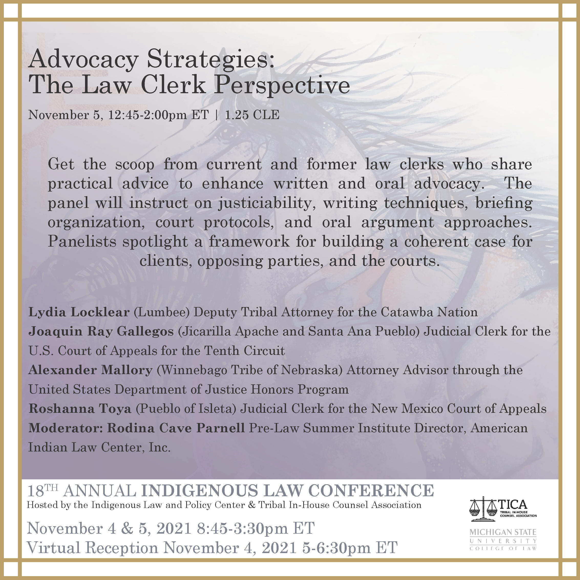 Advocacy Strategies: The Law Clerk Perspective: 2021 Indigenous Law Conference Day 2 Panel 3