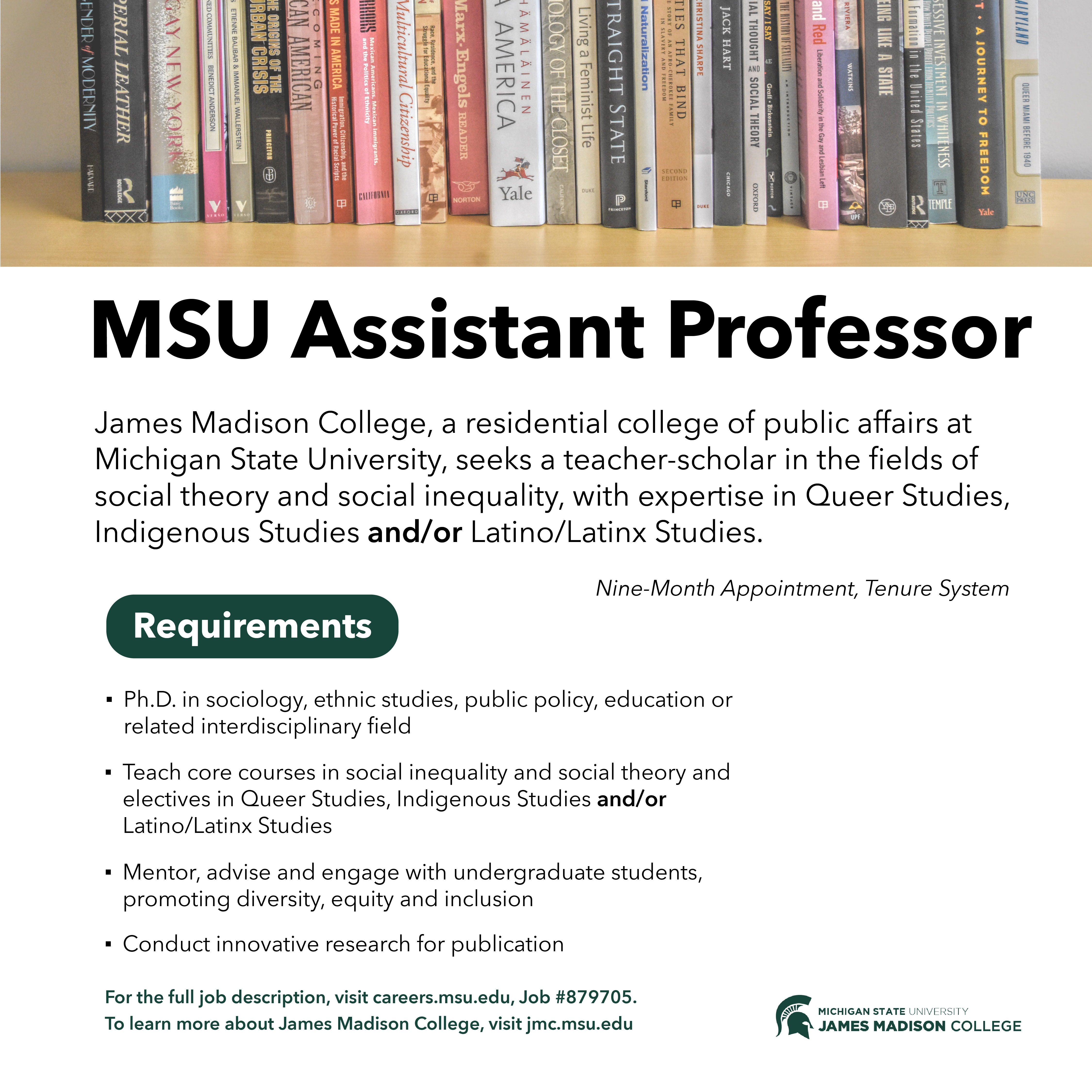 Department of Social Work Assistant or Associate Professor. Duluth, MN. Individuals who hold underrepresented and/or marginalized identities, especially American Indian and other Indigenous people, are strongly encouraged to apply. Job duties and responsibilities for this full time, tenure track faculty position include teaching courses in a variety of areas in both BSW and MSW programs; advising students; conducting and publishing scholarly research; providing professional, community and university service; and mentoring and supervising students in social work field placements. Open until filled.