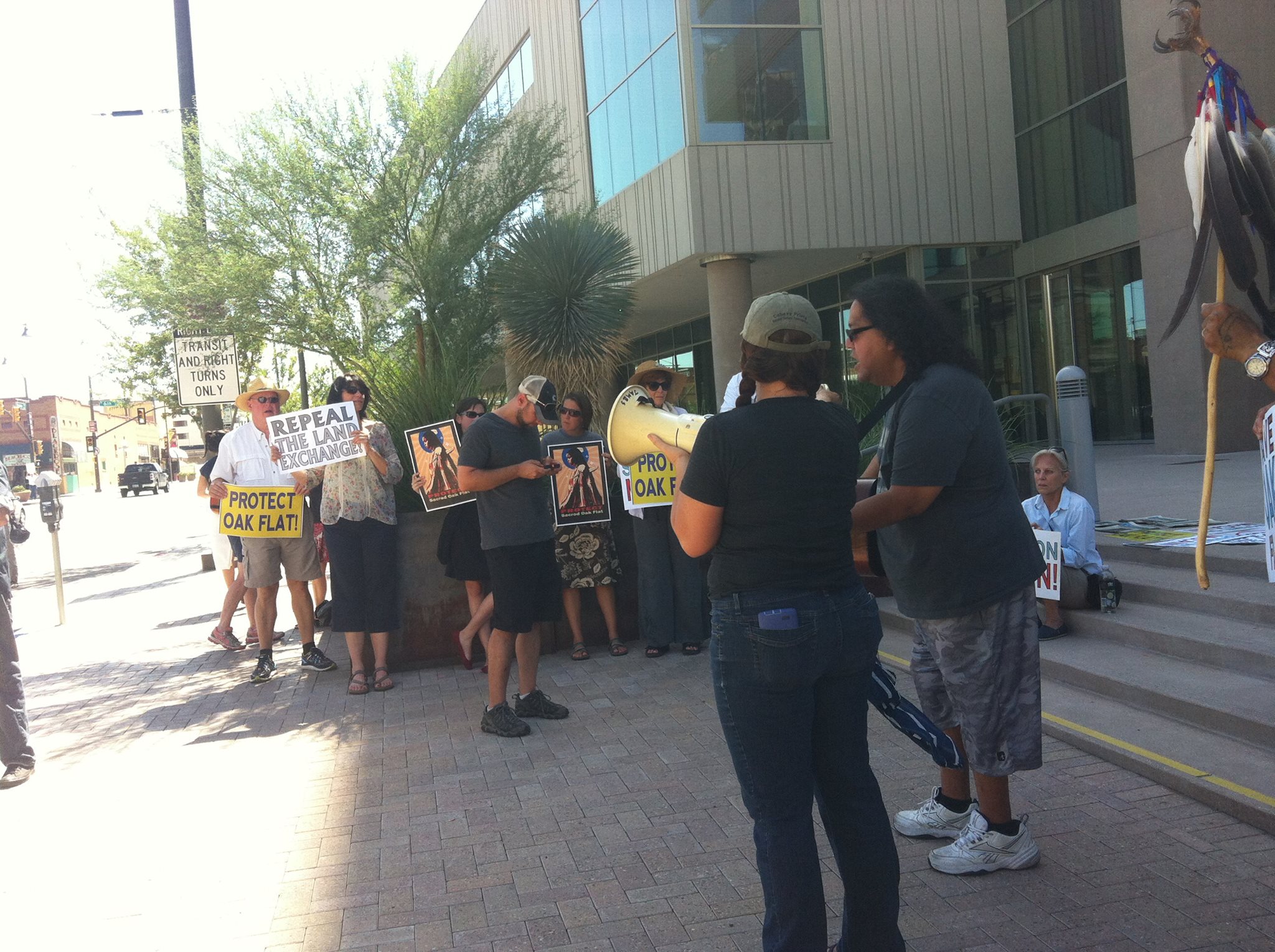 Native advocates protested a meeting today at Tucson Electric Power headquarters where Senator John McCain (R) was meeting. The protest was largely a response to the passing of a rider on last December’s National Defense Authorization Act that transfered title to sacred lands over to mining companies. It also passed along another message: No on S.R. 750.