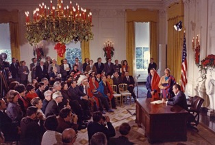 Photo President Richard Nixon signing landmark legislation on Native American sovereignty at the White House, December 15, 1970 by Oliver F. Atkins