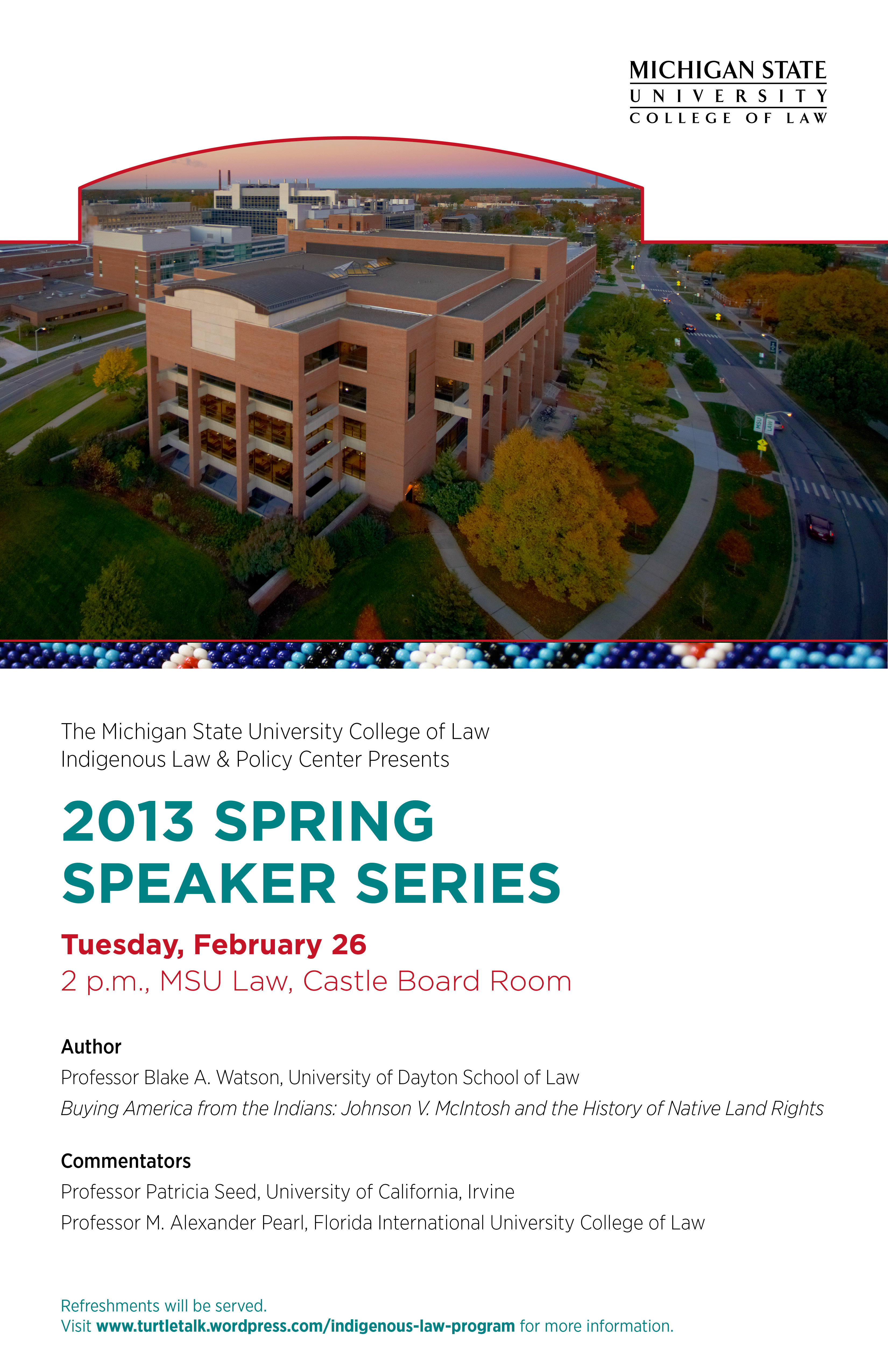 Join us for our third (and final) Spring Speakers Series event today, March 13th, at the MSU Law College.