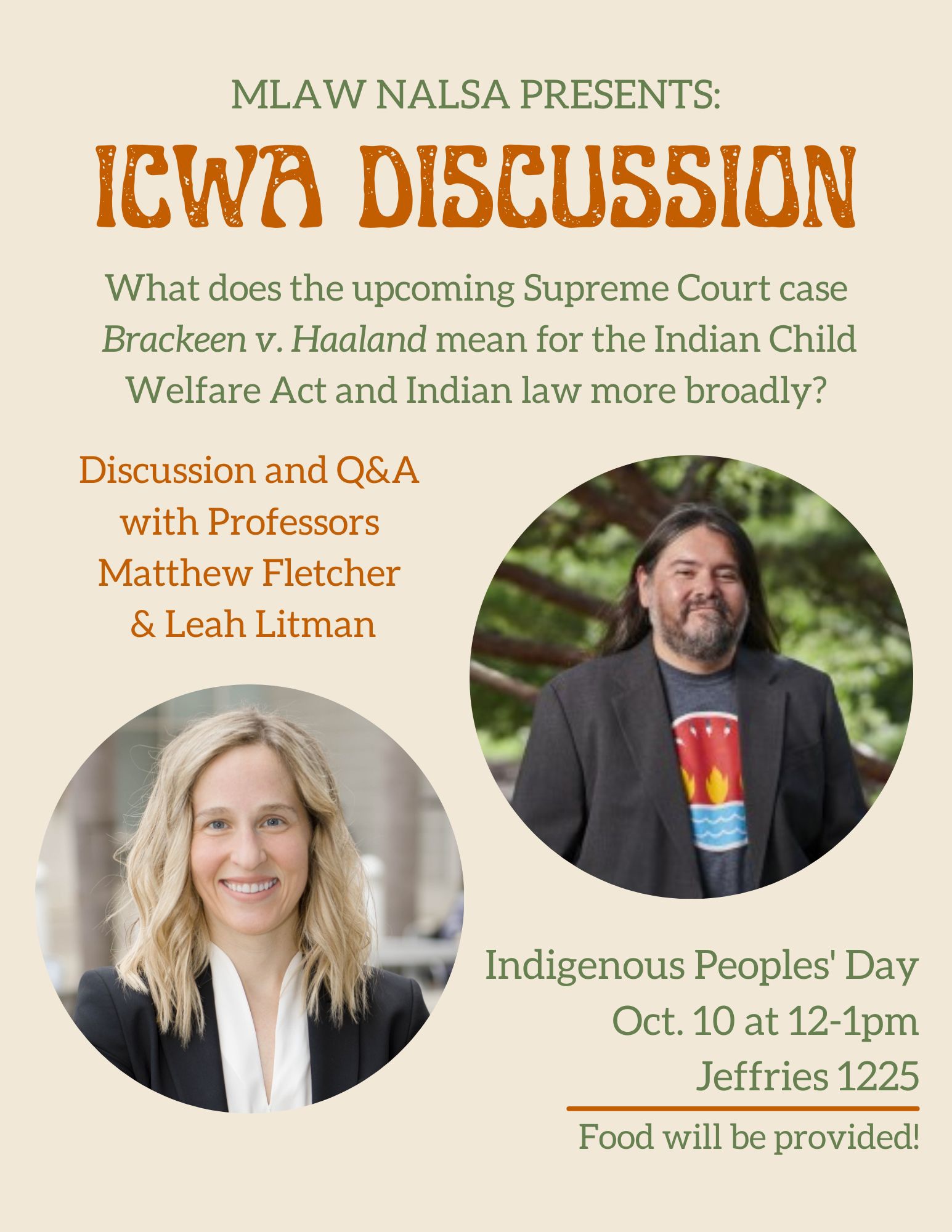 The Cultural Heritage Law Society is sponsoring this lecture in conjunction with U of M Law’s Native American Law Student Association.The panel will be held in Room 218 of Hutchins Hall at the University of Michigan Law School on Tuesday, October 30th. It will be a lunch lecture, so it will begin at 12:00 and end at 1:15 with lunch provided. It will be open to all of the University community.