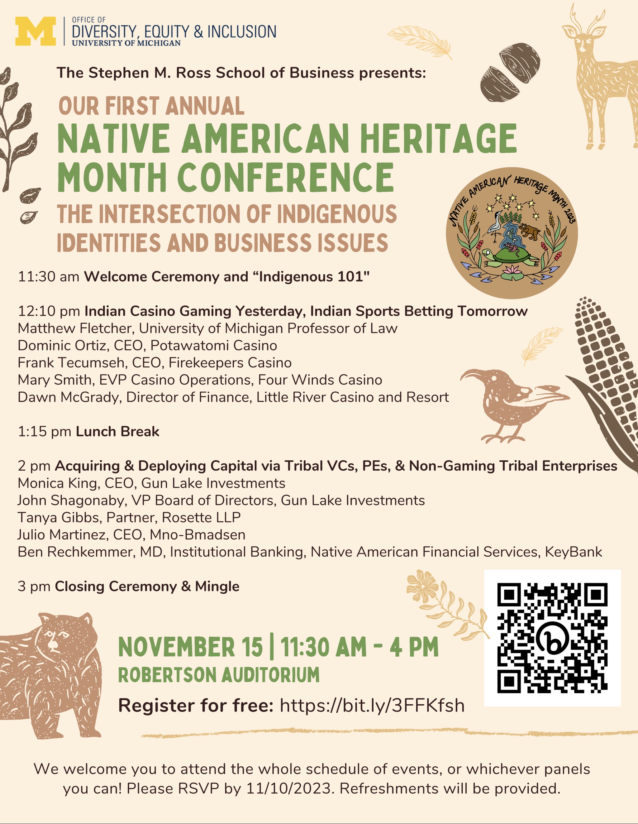 UM Ross Native American Heritage Conference TODAY November 12, 2024Matthew L.M. Fletcher Click to print (Opens in new window) Print Click to email a link to a friend (Opens in new window) Email Click to share on X (Opens in new window) X Click to share on Facebook (Opens in new window) Facebook More Click to share on Pinterest (Opens in new window) Pinterest Click to share on Tumblr (Opens in new window) Tumblr Click to share on Reddit (Opens in new window) Reddit Like Loading...
