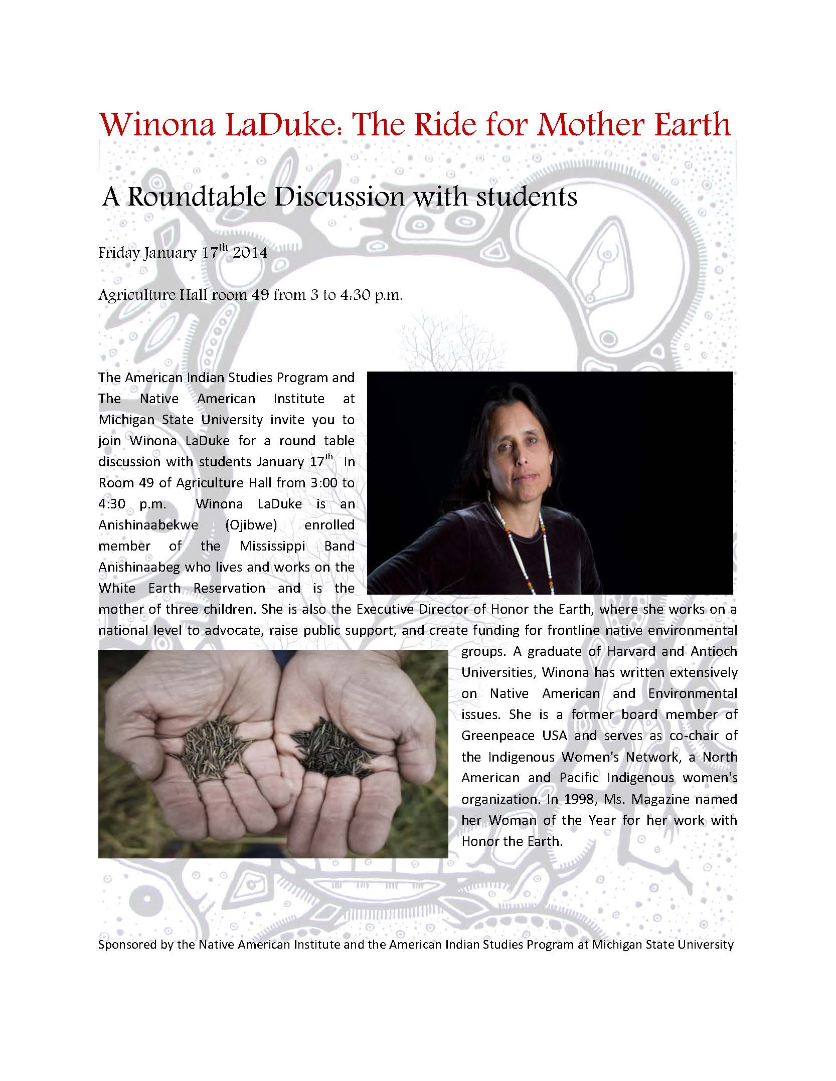 Winona LaDuke Rountable @ MSU on January 17, 2014