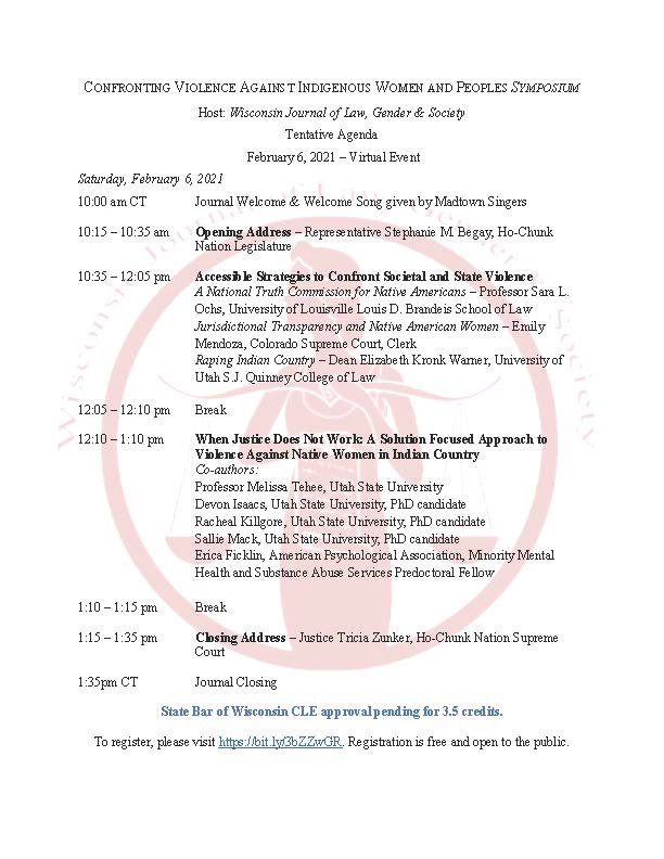 Proposals should be submitted to Lorenzo Gudino at gudino@wisc.edu and Jennifer Acevedo at acevedo3@wisc.edu no later than October 23, 2020. Submissions may be published and unpublished works. The Wisconsin Journal of Law, Gender & Society will likely publish accepted unpublished submissions. Authors of accepted submissions must virtually attend and present their work at the symposium on February 6, 2021. The organizers will communicate their decisions no later than November 15, 2020.