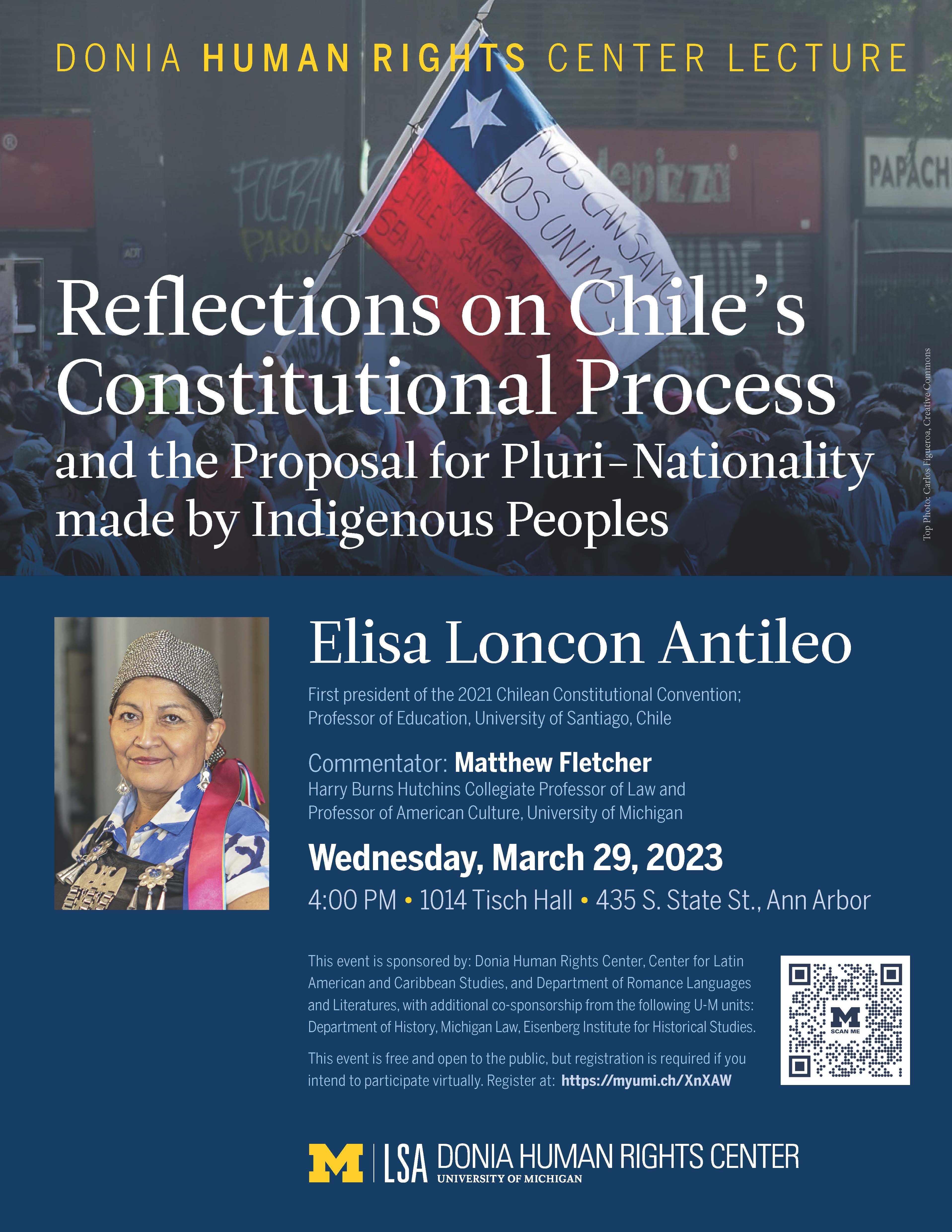 UMich Donia Center Lecture by Elisa Loncon (Fletcher Commenting) @ March 29 [hybrid event] Image March 28, 2023Matthew L.M. Fletcher Click to print (Opens in new window) Print Click to email a link to a friend (Opens in new window) Email Click to share on X (Opens in new window) X Click to share on Facebook (Opens in new window) Facebook More Click to share on Pinterest (Opens in new window) Pinterest Click to share on Tumblr (Opens in new window) Tumblr Click to share on Reddit (Opens in new window) Reddit Like Loading...